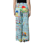 Dolce & Gabbana Light Blue Drawing Mid Waist Wide Leg Pants