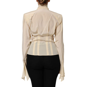 Dolce & Gabbana Light Yellow Silk Ascot Collared Blouse Top
