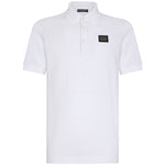 white cotton piqué weave logo plaque polo collar short sleeves straight hem Logo cotton polo shirt