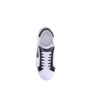 Dolce&Gabbana leather Sneakers with a round toe and lace-up front closure. The iconic contrasting DG logo decorates the side panels, while the logoed heel adds an additional distinctive touch. The flat sole ensures comfort and versatility for everyday wear, complemented by a logoed insole that finishes the design with attention to detail. An urban and recognizable style, signed by the Italian maison.