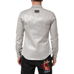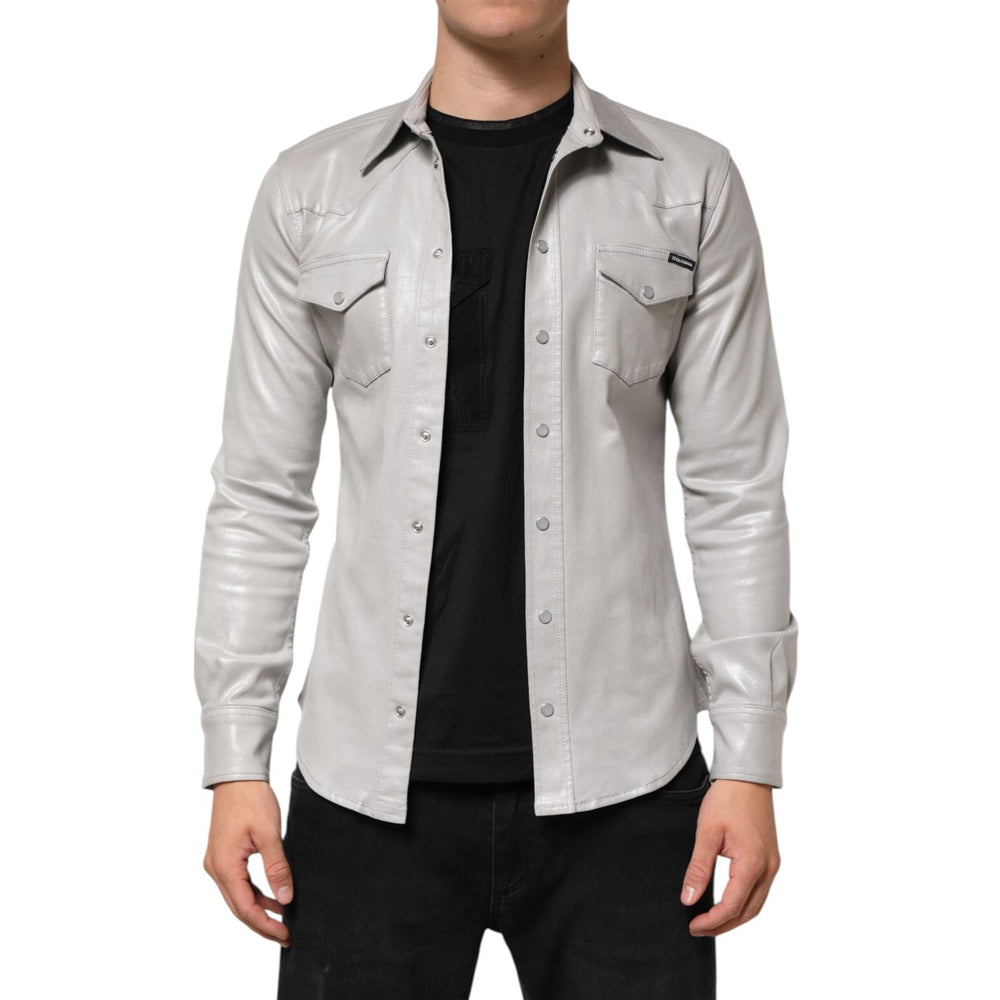 Dolce & Gabbana Metallic Gray Cotton Button Down Men Shirt