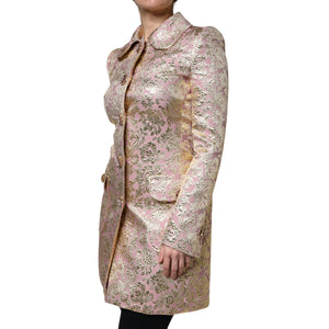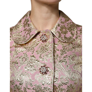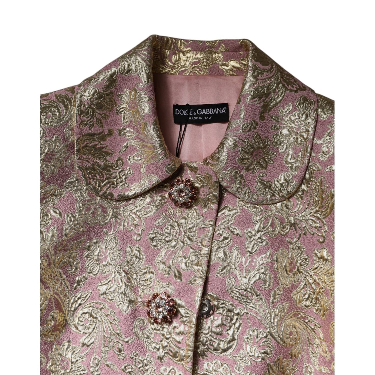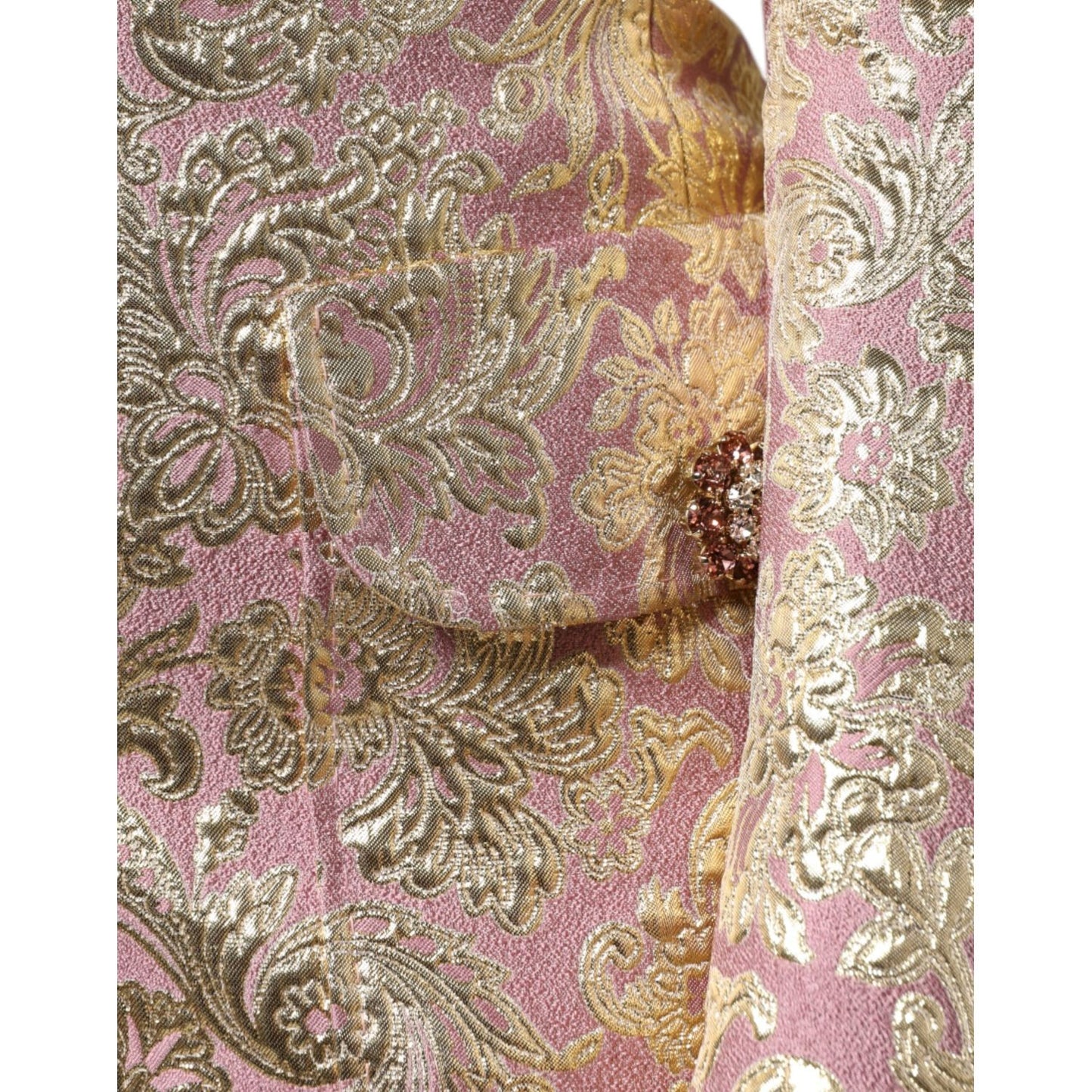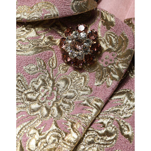 Dolce & Gabbana Metallic Pink Gold Jacquard Jewel Button Coat Jacket
