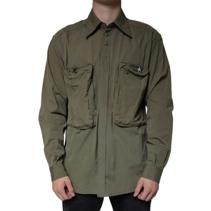 Dolce & Gabbana Military Green Cotton Bend Collared Coat Jacket