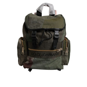 Dolce & Gabbana Military Green Patchwork Travel Backpack Bag