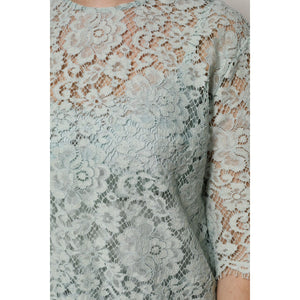 Dolce & Gabbana Mint Green Floral Lace Cotton Blouse Top