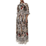 Dolce & Gabbana Multicolor Animal Print Silk Ascot Maxi Dress