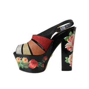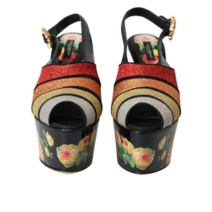 Dolce & Gabbana Multicolor Floral Crystal Platform Sandals Shoes