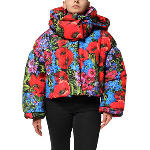 Dolce & Gabbana Multicolor Floral Hooded Puffer Coat Jacket