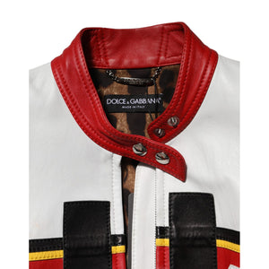 Dolce & Gabbana Multicolor Leather Biker Full Zip Coat Jacket