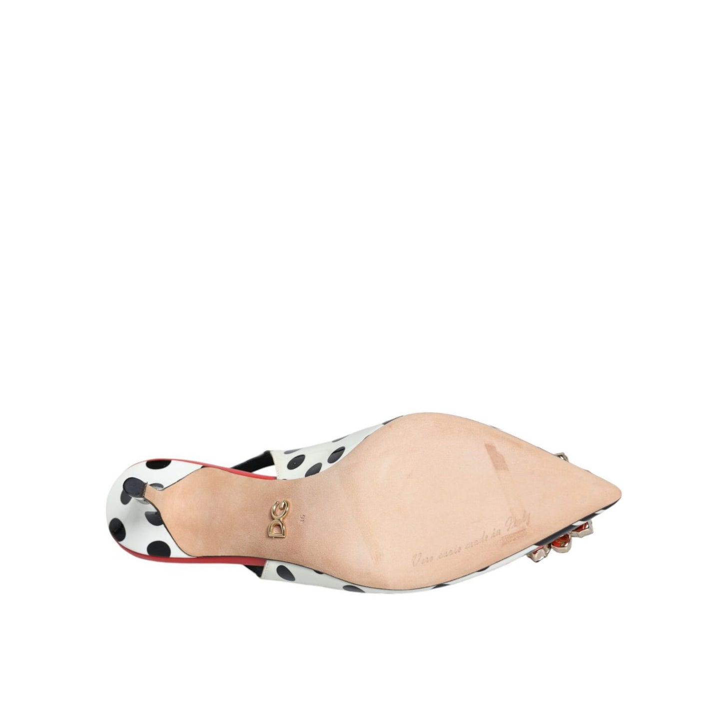 Gorgeous 100% Authentic Dolce & Gabbana leather slingback heels pumps with polka dots and floral print and crystal embellishment.