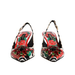 Dolce & Gabbana Multicolor Leather Crystal Heels Slingback Shoes