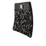 Dolce & Gabbana Multicolor Leopard Jacquard Logo Plaque Men Pouch Bag