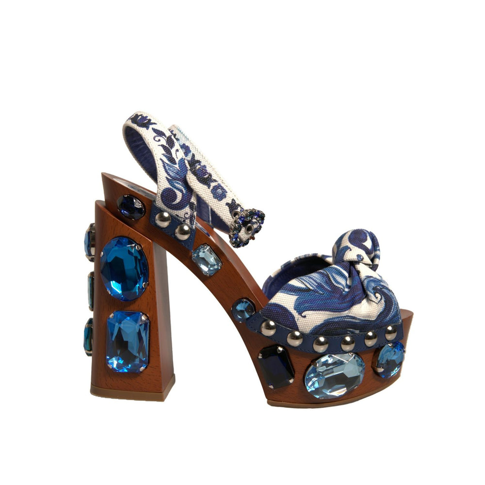 Dolce & Gabbana Multicolor Majolica Embellished Wedge Sandals Shoes