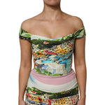 Dolce & Gabbana Multicolor Off Shoulder Long Sheath Dress