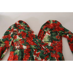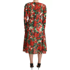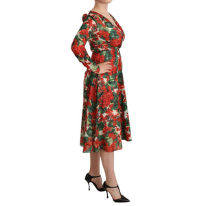 Gorgeous, 100% Authentic Dolce & Gabbana dress white, red and green V-neck dress made of silk. Fastened with zip and hook on the back. Embellished with a floral print. It features long sleeves and tie-up detail.