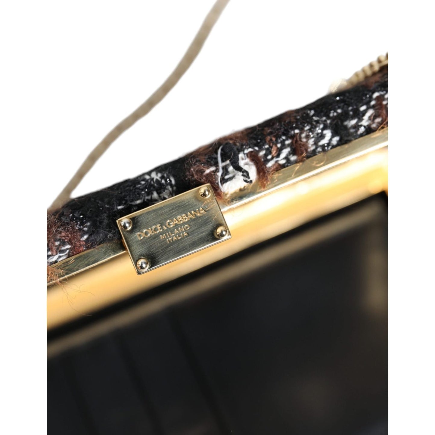 Dolce & Gabbana Multicolor Tweed Floral Clutch Evening Party Purse CrossBody Bag
