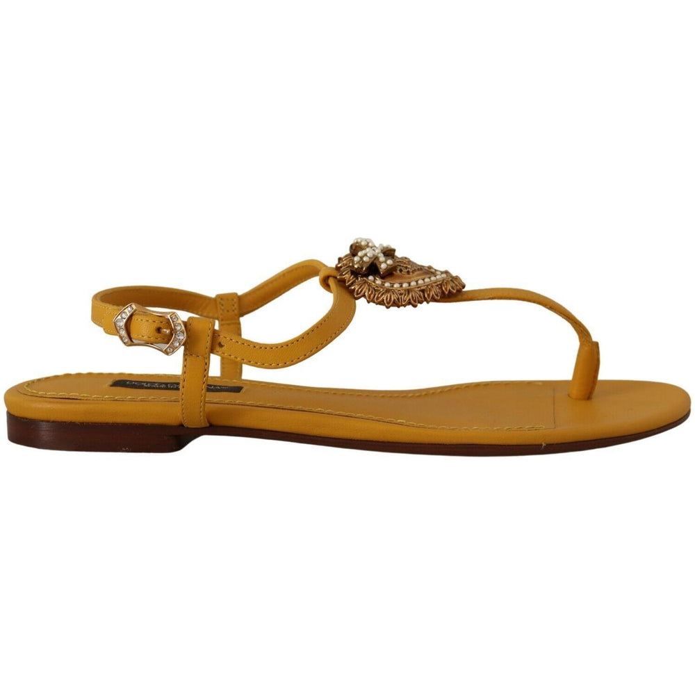 Dolce & Gabbana Mustard Leather Devotion Flats Sandals Shoes