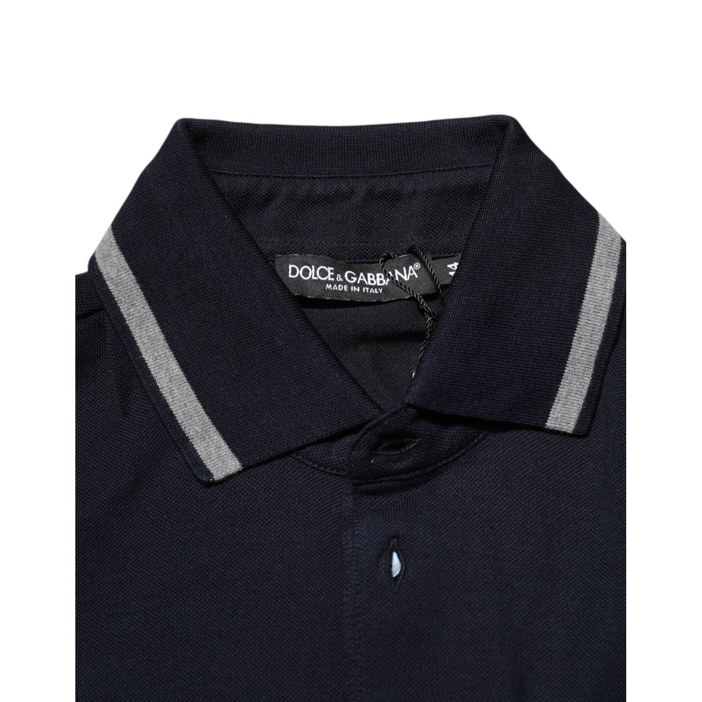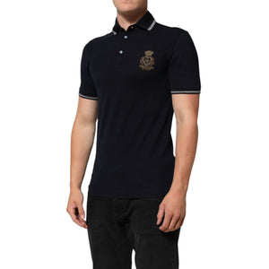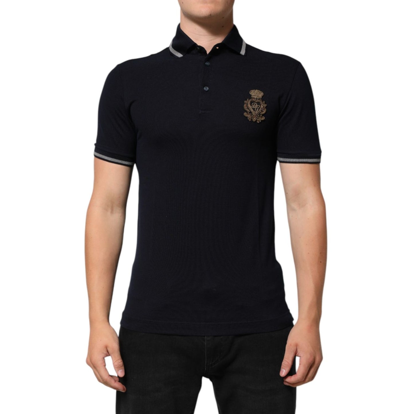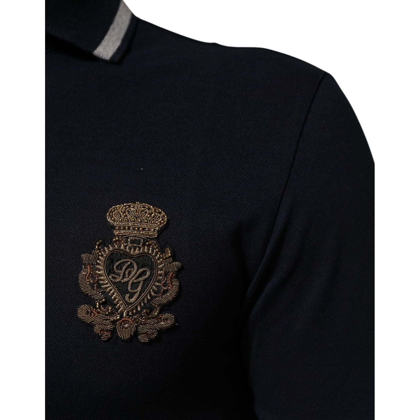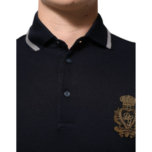 Dolce & Gabbana Navy Blue Cotton Crown Crest Logo Men T-Shirt