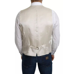 Dolce & Gabbana Off-White Cotton Silk Formal Coat Vest