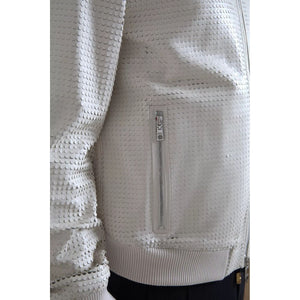 Dolce & Gabbana Off White LeatherPerforated Full Zip Jacket