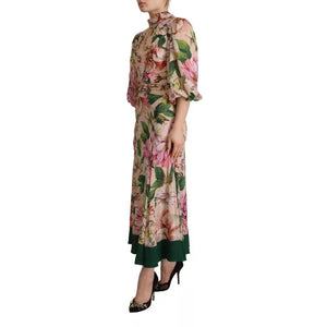 Dolce & Gabbana Pink A-line Sheath Floral Pussy Bow Long Dress