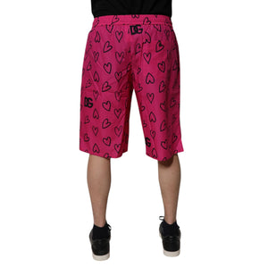 Dolce & Gabbana Pink Cotton Heart Print Bermuda Shorts