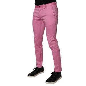 Dolce & Gabbana Pink Cotton Slim Fit Men Dress Formal Pants