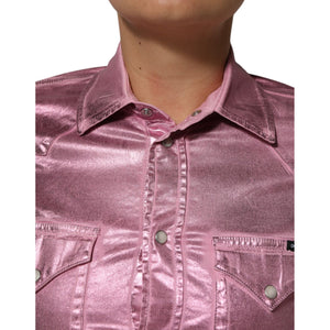 Dolce & Gabbana Pink Cotton Stretch Collared Cropped Jacket