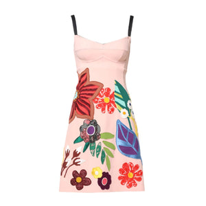 Dolce & Gabbana Pink Floral Print Spaghetti Strap Mini Dress