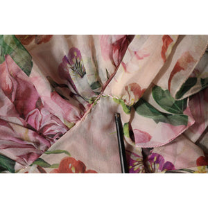 Dolce & Gabbana Pink Floral Print Tiered Long Maxi Dress