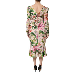 Dolce & Gabbana Pink Floral Silk Fit And Flared Midi Dress