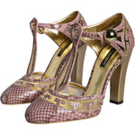 Dolce & Gabbana Pink Gold Leather Pumps T-strap Sandals Shoes