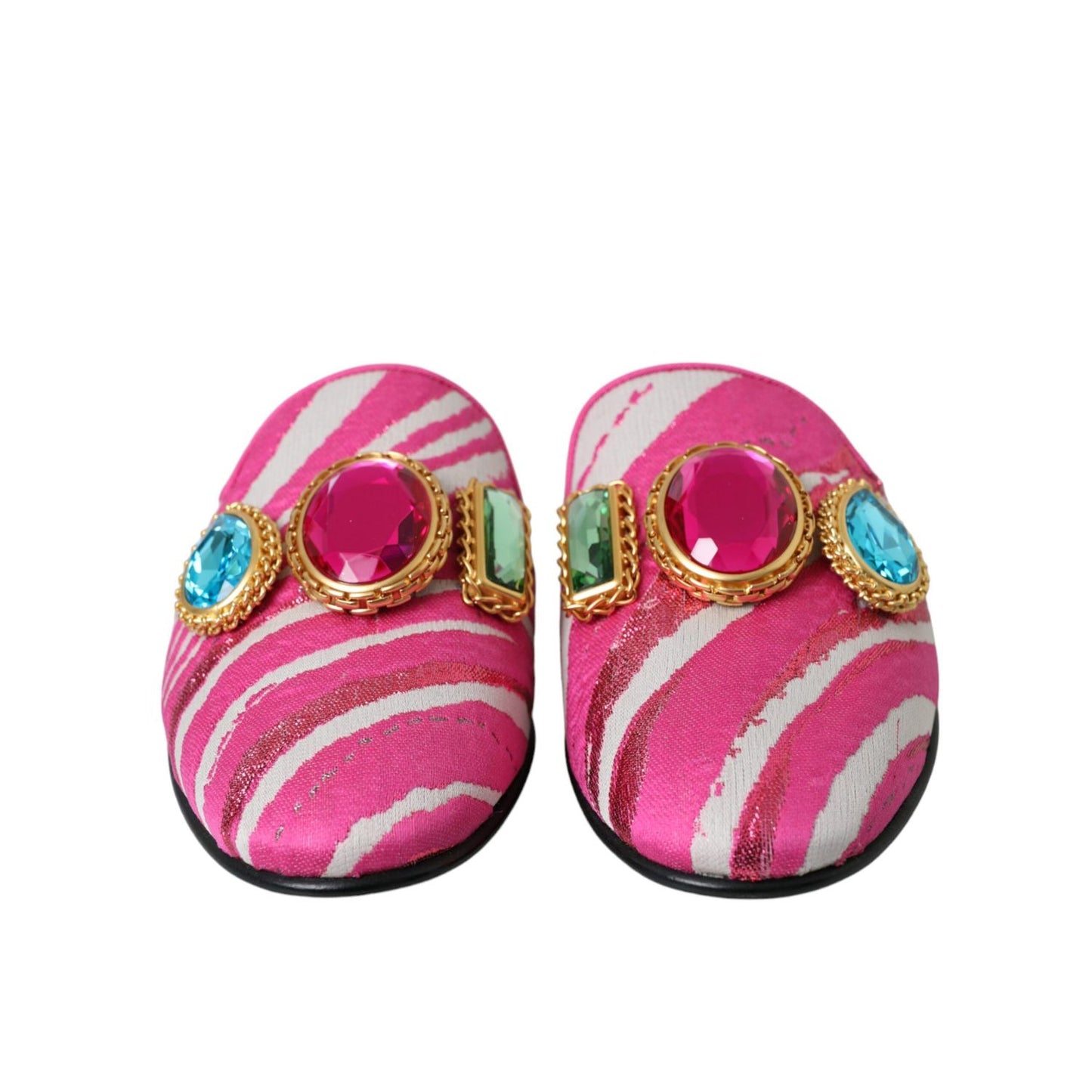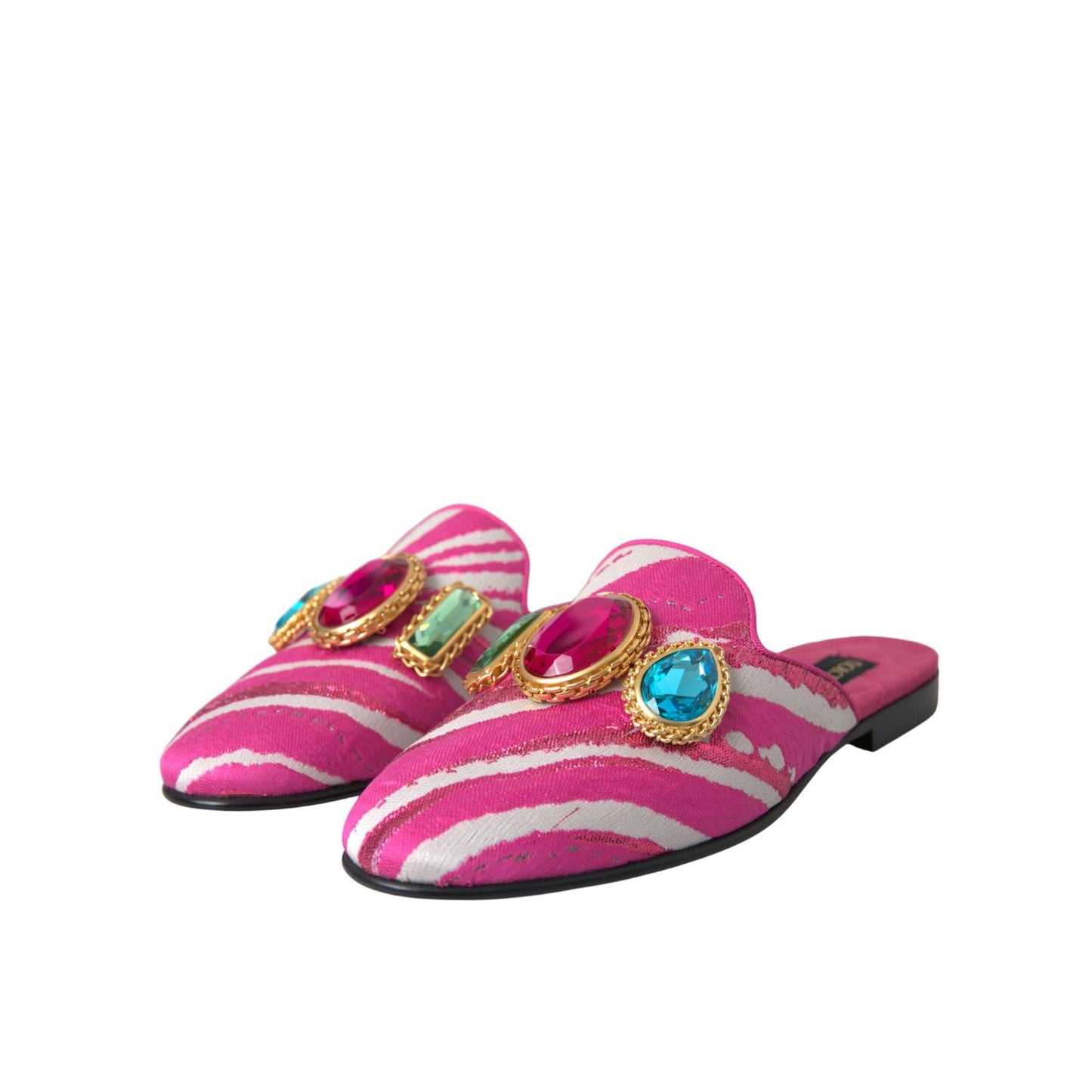 Dolce & Gabbana Pink Jacquard Crystal Mule Flat Sandals Shoes