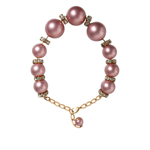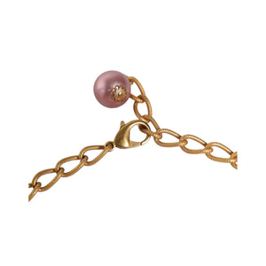 Dolce & Gabbana Pink Maxi Faux Pearl Beads Crystals Gold Chain Necklace