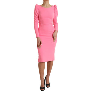 Dolce & Gabbana Pink Polyester Long Sleeves Sheath Midi Dress