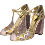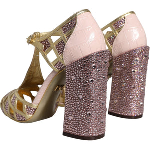 Dolce & Gabbana Pink Strass Crystals T-strap Sandals Shoes