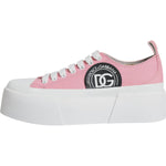 Dolce & Gabbana Pink White Canvas Logo Low Top Sneakers Shoes