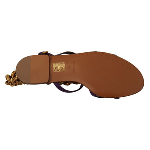 Dolce & Gabbana Purple Leather Devotion Flats Sandals Shoes