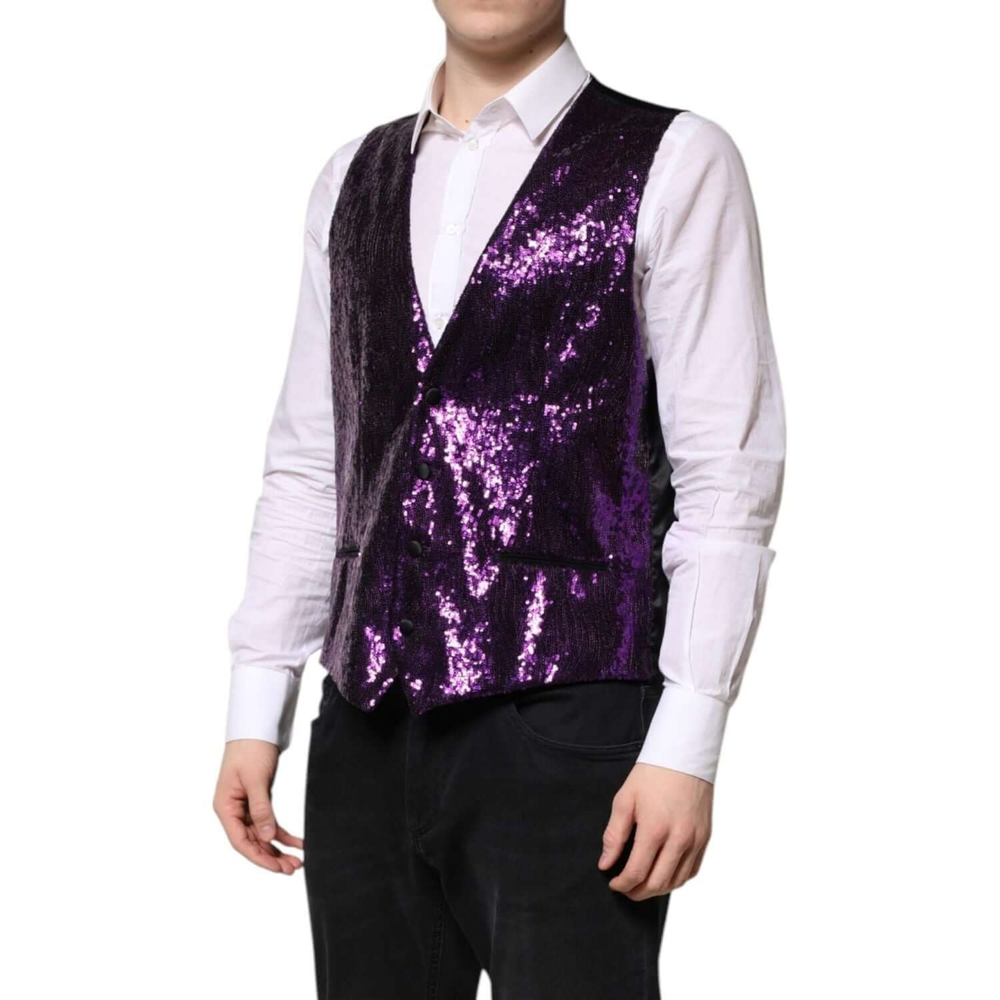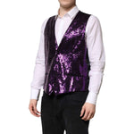 Dolce & Gabbana Purple Sequined Dress Formal Waistcoat Vest