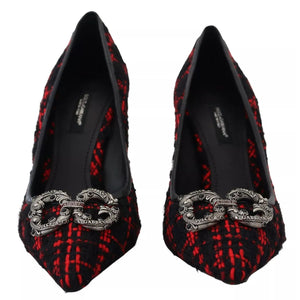 Dolce & Gabbana Red Black Tweed DG Amore Heels Pumps Shoes
