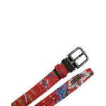 Dolce & Gabbana Red Floral DG Embellished Metal Buckle Belt