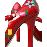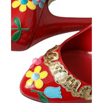 Dolce & Gabbana Red Leather Embellished Mary Jane Pumps Heels Shoes