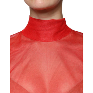 Dolce & Gabbana Red Mesh Turtleneck Long Sleeve Blouse Top