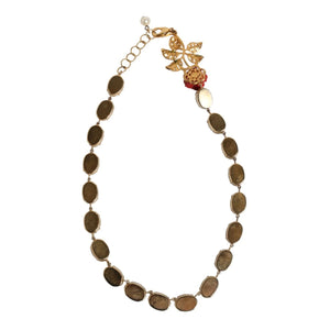Dolce & Gabbana Red Rose Green Crystal Gold-Tone Chain Necklace