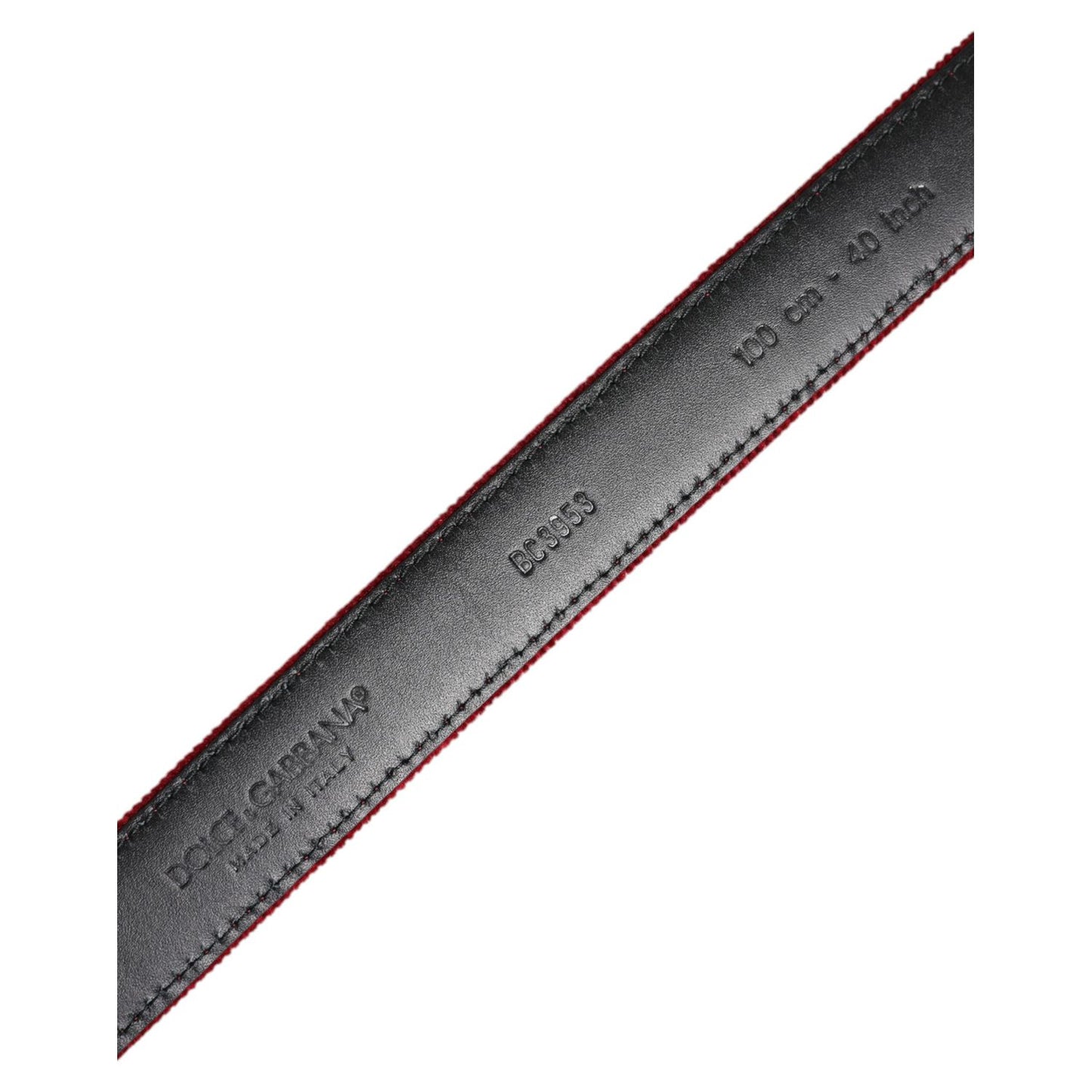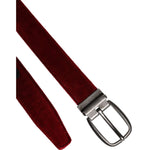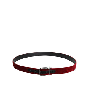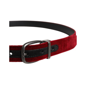 Dolce & Gabbana Red Velvet Black Metal Buckle Logo Belt