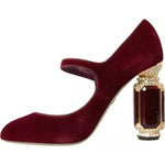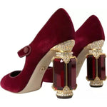 Dolce & Gabbana Red Velvet Gold Crystals Heels Mary Janes Shoes
