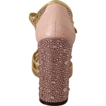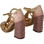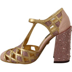 Dolce & Gabbana Pink Gold Leather Crystal Pumps T-strap Shoes