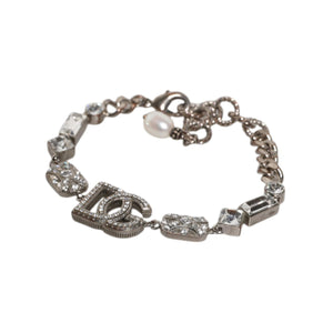 Dolce & Gabbana Silver Brass Crystal DG Logo Charm Embellished Bracelet