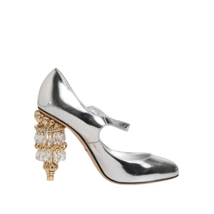 Dolce & Gabbana Silver Chandelier Sculpted Heel Mary Jane Pump Shoes