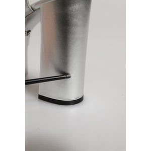 Dolce & Gabbana Silver Logo Ankle Strap Heels Sandals Shoes